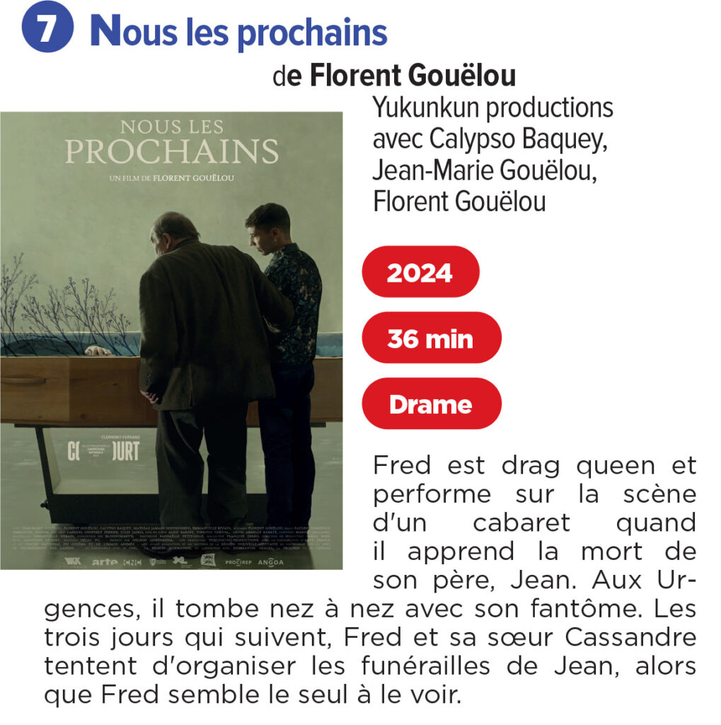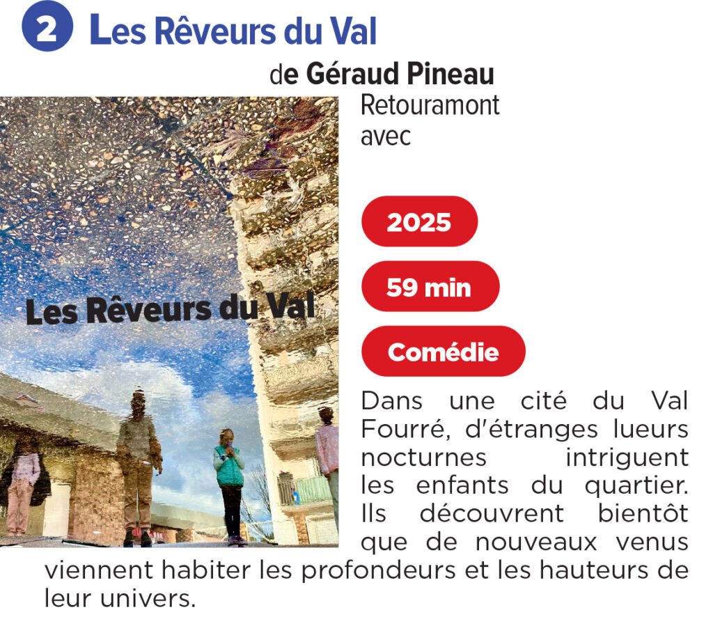 Le programme compétition d’Armoricourt 2025 rassemble 7 moyens métrages (moins d’une heure chacun) distribués sur 3 séances au cinéma Le Douron à Plestin-les-Grèves : une première séance le vendredi 14 novembre à 20:30, avec 2 films; une séance samedi 15 novembre à 15:30 avec 3 films; et une dernière séance le samedi 15 novembre à 20:30 avec 2 films.